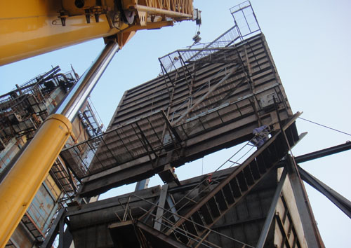 中粮龙江130吨锅炉钢架吊装
